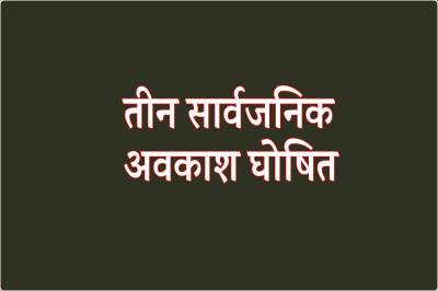 कलेक्टर रानी बाटड़ ने जो आदेश जारी किया है उसके मुताबिक पहला सार्वजनिक अवकाश 3 फरवरी दिन को बसंत पंचमी के उपलक्ष्य में रहेगा। 3 फरवरी को सोमवार है ऐसे में रविवार के बाद सोमवार को सार्वजनिक अवकाश होने से कर्मचारियों को एक साथ दो दिन की छुट्टी मिल जाएगी। दूसरा सार्वजनिक अवकाश 30 सितंबर को दशहरा पर रहेगा इस दिन मंगलवार है। वहीं तीसरा सार्वजनिक अवकाश 23 अक्टूबर को भाईदूज के उपलक्ष्य में घोषित किया गया है इस दिन गुरुवार है।