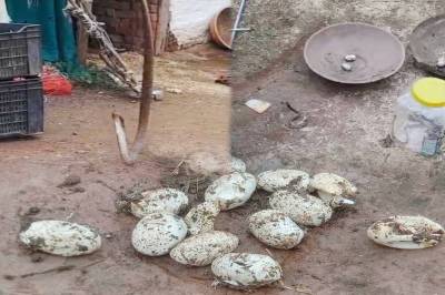सिवनी के डूंडा सिवनी थाना इलाके के सांई नगर में रहने वाले नंदू डहरिया के घर जहरीले कोबरा सांप का पूरा कुनबा मिलने से हड़कंप मच गया। पहले घर में कोबरा के छोटे छोटे दर्जनों बच्चे निकले और फिर एक बड़ी नागिन नजर आई। घर में निकल रहे सांपों को देख परिवार ने तुरंत स्नैक कैचर प्रवीण तिवारी को सूचना दी। मौके पर पहुंचे स्नैक कैचर ने घर में निकले 25 बेबी कोबरा और एक एडल्ट नागिन को पकड़ा। इसके बाद जब स्नैक कैचर ने घर के उस हिस्से के कच्चे फर्श को खोदा जहां से बेबी कोबरा निकल रहे थे तो वहां बड़ी संख्या में नागिन के अंडे मिले हैं। इन अंडों में से भी बेबी कोबरा निकल रहे थे।
