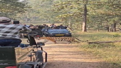 सिवनी. मोगलीलैण्ड कहलाने वाले सिवनी जिले के पेंच टाइगर रिजर्व में चल रहे राज्य स्तरीय मोगली बाल उत्सव में दूसरे दिन बलू गु्रप के 117 मोगली मित्र छात्र-छात्राओं ने जंगल सफारी की। पेंच के कोर एरिया में जंगल सफारी के दौरान बलू गु्रप में शामिल बड़वानी, शाजापुर, रायसेन, पन्ना व अन्य जिले के बच्चों को बाघ, तेंदुआ, चीतल दिखाई दिया, बच्चे काफी आनंदित हुए। बड़वानी जिले के बच्चों ने बताया कि एक जगह झाडिय़ों के बीच खड़ा दहाड़ता बाघ दिखा, तो एक जगह सडक़ पार करता बाघ नजर आया है। मोगली की धरती पर पहली बार बाघ (शेरखान) को सामने देखकर तो हैरान रह गए। जंगल में हरियाली के बीच बायसन, चीतल, लंगूर, कई तरह के पक्षियों को भी देखने का मौका मिला। इसके अलावा सडक़ पर बाघ के पगमार्क नजर आने पर विशेषज्ञों ने उनकी पहचान करने का तरीका समझाया।