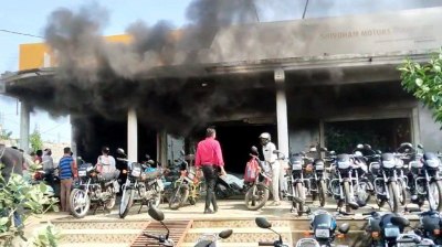 बाइक शोरूम में लगी आग,