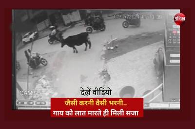 गाय को लात मारने के कारण युवकों को चंद सेकेंड में ही सजा मिलने का ये वीडियो अब सोशल मीडिया पर तेजी से वायरल हो रहा है। लोग इस पर तरह तरह के कमेंट भी कर रहे हैं। वहीं कुछ पशुप्रेमियों ने गाय को लात मारने की घटना की निंदा की है और नाराजगी भी जताई है।