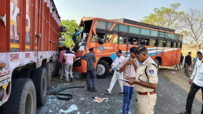 शहडोल. गोहपारू थाना क्षेत्र के ग्राम असवारी के पास शनिवार की शाम बस व ट्रक की आमने-सामने से टक्कर हो गई। इस हादसे में ट्रक चालक की घटना स्थल पर ही मौत हो गई, वहीं 20 से अधिक यात्रियों को गंभीर चोट आई है। जानकारी के अनुसार दीपक बस सर्विस की बस क्रमांक एमपी 17 पी 1255 रीवा से सवारी लेकर शहडोल आ रही थी, तभी शहडोल से उत्तरप्रदेश जा रहे ट्रक के साथ असवारी में आमने-समाने भिडंत हो गई। हादसे के बाद बस के यात्रियों में चीख पुकार मच गई। स्थानीय लोगों की मदद से यात्रियों को बस से निकाला गया और पुलिस को घटना की जानकारी दी गई। पुलिस ने घटना स्थल पहुंचकर बचाव कार्य शुरू करते हुए सभी घायलों को सामुदायिक स्वास्थ्य केन्द्र गोहपारू में भर्ती कराया। जहां से प्राथमिक उपचार के बाद 8 यात्रियों की हालत गंभीर होने पर उन्हें मेडिकल कॉलेज रेफर किया गया। जबकि ट्रक चालक अखिलेश मिश्रा 44 वर्ष निवासी प्रतापगढ़ की मौके पर मौत हो गई। इस हादसे में बस चालक को भी गंभीर चोट आई है। थाना प्रभारी विनय सिंह गहरवार ने बताया कि घटना शाम 4 बजे की है, जानकारी लगते ही बचाव कार्य शुरू किया गया, घायलों को गोहपारू अस्पताल में भर्ती कराया गया है। 7-8 यात्रियों में फैक्चर व अन्य समस्या होने पर मेडिकल कॉलेज रेफर किया गया है। पुलिस ने वाहन को अपने कब्जे मेंं लेकर जांच शुरू कर दी है।