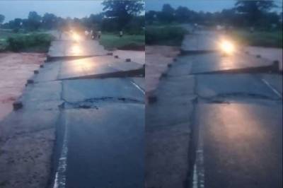 Deadly stunt: बारी बारिश के कारण आई बाढ़ से पुलिया हुई क्षतिग्रस्त...चार टुकड़े हो चुकी पुलिया पर से युवक ने निकाली बाइक...।