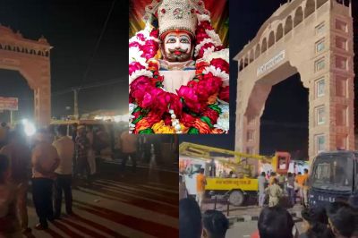 पुलिस ने बताया कि मंदिर से पहले तोरण द्वार की यह घटना है। कल रात चूरू जिले का रहने वाला एक युवक मंदिर दर्शन करने के लिया आया था। उसका नाम विकास था। वह तोरण द्वार पर चढ़ गया और उपर से हल्ला मचाने लगा। जबकि तोरण द्वार पर चढ़ने के लिए कोई सीढ़ी नहीं है। उसके बाद भी वह जैसे-तैसे करीब पचास से साठ फीट ऊपर चढ़ गया। बाद में उसे नीचे उतारने के लिए क्रेन बुलानी पड़ी।