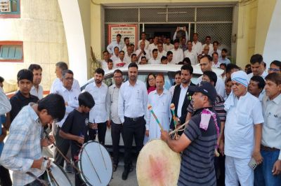 सीकर. अभिभाषक संघ, सीकर की ओर से लगातार 63 दिन से सीकर संभाग और नीमकाथाना जिला बहाल करने की मांग को लेकर धरना दिया जा रहा है। हर दिन अधिवक्ता अनशन पर भी बैठ रहे हैं। अधिवक्ताओं ने गुरुवार को अनोखे अंदाज में विरोध जताया। अधिवक्ता सीकर कलेक्ट्रेट परिसर में घुस गए और 'ढोल बजाकर जोरदार प्रदर्शन कर राज्य सरकार व जिला प्रशासन को जगाने का प्रयास किया। हालांकि इस दौरान पुलिस के जवानों ने ढोल बजाने से मना किया लेकिन अधिवक्ता व अभिभाषक संघ इस पर अड़ गए और लगातार ढोल-नगाड़ों की थाप के साथ कलक्ट्रेट को गुंजायमान कर दिया। पुलिस इंटेलीजेंस भी फेल हो गई।