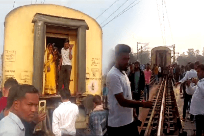 घटना के चलते ट्रेन में सवार यात्रियों के बीच हड़कंप मच गया। ट्रेन रुकने के बाद लोग गाड़ी से नीचे उतरे। हालांकि, इस घटना किसी के हताहत होने की खबर सामने नहीं आई है। सूचना मिलते ही रेलवे के अधिकारी-कर्मचारी मौके पर पहुंचे और राहत व बचाव कार्य शुरू कर दिया है। फिलहाल, रेलवे की एक टीम हादसे के कारणों की जांच में जुट गई है।