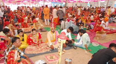 राठौर तेली समाज द्वारा आयोजित द्वितीय नि:शुल्क सामूहिक विवाह समेलन में गुरूवार को यहां छत्रपुरा रोड स्थित एक निजी रिसोर्ट में आयोजित किया गया।