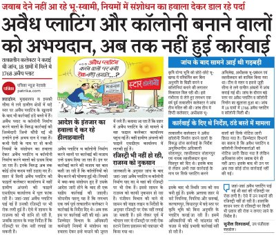जानकारी के अनुसार जांच के बाद जहां-जहां अवैध प्लाटिंग व कॉलोनी निर्माण पाए गए थे वहां की रजिस्ट्री पर भी रोक है। इससे शासन के राजस्व को काफी नुकसान हो रहा है। पंजीयन विभाग की माने तो शासन की गाइड लाइन व निर्देशों के अनुसार रजिस्ट्री पर रोक नहीं लगाई जा सकती है। इसे लेकर पूर्व में भोपाल स्तर से रजिस्ट्री पर लगी रोक हटाने जिला प्रशासन को पत्राचार भी किया गया था। इसके बाद भी स्थिति जस की तस बनी हुई है। इसके अलावा शहर से सटे निपनिया, पिपरिया और छतवई, कल्याणपुर, विचारपुर में बड़े स्तर पर कृषि भूमि को बिना अनुमति के प्लाटिंग कराई जा रही है। इसमें अधिकारियों की भी सांठगांठ की वजह से कोई प्रभावी कार्रवाई नहीं हो रही है।