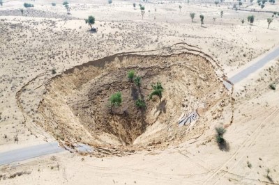 जानकारी के मुताबिक सोमवार देर रात करीब तीन बजे ढाणी भोपालाराम से सहजरासर गांव जाने वाली सड़क पर सहजरासर गांव की रोही में जगूनाथ के खेत में अचानक जमीन धंस गई। जमीन धंसने से 150 से 200 फीट लम्बा-चौड़ा तथा 70-80 फीट गहरा गड्ढा हो गया। जमीन धंसने के साथ ही करीब 50-60 फीट तक सड़क भी जमींदोज हो गई है। इससे सड़क से आवागमन बाधित हो गया है।
