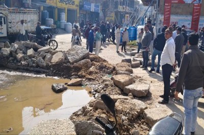 खैरथल में अम्बेडकर चौराहे से नई अनाज मंडी गेट तक बन रही सड़क का निर्माण कार्य बार-बार रुकने से व्यापारियों और स्थानीय लोगों का गुस्सा फूट पड़ा। शुक्रवार को अनाज मंडी गेट के बाहर व्यापारियों ने जाम लगाकर नारेबाजी की और प्रशासन से जल्द समाधान की मांग की। व्यापारियों का कहना है कि लंबे समय से सड़क अधूरी पड़ी होने के कारण कारोबार चौपट हो गया है।
