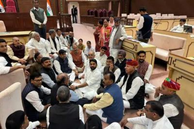 जयपुर। राजस्थान विधानसभा में पूर्व प्रधानमंत्री इंदिरा गांधी पर विवादित टिप्पणी के मामले में कांग्रेस ने हल्ला बोल दिया है। छह कांग्रेस विधायकों को सस्पेंड करने के बाद गतिरोध बढ़ गया है। कांग्रेस विधायकों का कल से सदन में धरना जारी है। आज रात भर कांग्रेस विधायक सदन में ही रहे। इस दौरान कांग्रेस विधायकों ने रामधुनी की, इसके बाद वहीं पर सो गए। विधानसभा में पूर्व पीएम इंदिरा गांधी पर सामाजिक न्याय अधिकारिता मंत्री की टिप्पणी का कांग्रेस विरोध कर रही है। आज प्रदेशभर में कांग्रेस की ओर से सभी जिला मुख्यालयों पर विरोध प्रदर्शन किया जाएगा। कल स्पीकर वासुदेव देवनानी ने गोविंद सिंह डोटासरा, उप नेता प्रतिपक्ष रामकेश मीणा, अमीन कागजी, जाकिर हुसैन गैसावत, हाकम अली खान और संजय कुमार को बजट सत्र की बची हुई अवधि के लिए निलंबित कर दिया था।
