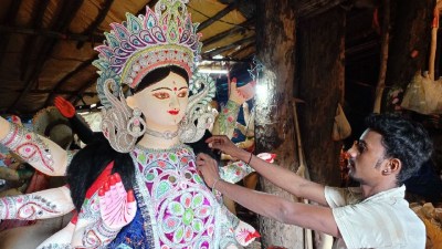 सज रहे पंडाल, बन रही आकर्षक झांकी