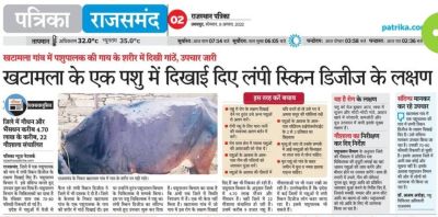 राजसमंद. जिले में लंपी स्किन डिजीज के मामले लगातार बढ़ते जा रहे हैं। जिले में अभी तक इसके 153 मामले सामने आ चुके हैं। पशुपालन विभाग ने शनिवार को सात पशुओं के सेम्पल लेकर भोपाल जांच के लिए भेजे हैं। हालांकि पशु पालन विभाग का दावा है कि जिले में इससे अभी तक एक भी पशु की मौत नहीं हुई है। प्रदेश में पिछले कई दिनों से पशुओं में लम्पी स्किन डिजीज बीमारी फैल गई है। इस बीमारी ने जिले के पशुओं को भी अपनी जद में ले लिया है। जिले में 8 अगस्त को खटामला गांव में एक पशुपालक की गाय में इसके लक्षण दिखाई दिए थे। पशुपालन विभाग को जानकारी मिलते ही उसका तुरंत उपचार शुरू कर दिया था। स्थिति यह है कि पिछले एक सप्ताह में इससे 153 से अधिक पशु सामने आ चुके हैं। पशुओं में तेजी से बीमारी फैलने के चलते पशुपालन विभाग के संयुक्त निदेशक डॉ. अजय अरोड़ा ने बताया कि शनिवार को देलवाड़ा तहसील के ग्राम पंचायत शिशवी केघराम शीला का गुड़ा, रामपुरिया एवं लोलेरा का गुड़ा से दो भैंस और 5 पशुओं के रक्त के नमूने लेकर जांच केलिए नेशनल इंस्टीट्यूट ऑफ हाई सिक्योरिटी एनिमल डिजीच भोपाल को भेजे गए हैं। जिला रोग निदान प्रयोगशाला राजसमंद के प्रभारी डॉक्टर जगदीश जीनगर के नेतृत्व में क्षेत्रीय पशु रोग निदान केंद्र उदयपुर के अजय कुमार के साथ ही डॉ. लोकेश छीपा, पशुधन सहायक जगवीर गुर्जर एवं दिव्या पंचोली के सहयोग से गायों और भैंसों के रक्त के नमूने, नेजल स्वाब व त्वचा में हुई घाठो आदि के नमूने लिए गए। उल्लेखनीय है कि राजस्थान पत्रिका में 8 अगस्त को च्खटामला के एक पशु में दिखाई दिए लंपी स्किन डिजीज के लक्षणज् शीषर्क से समाचार प्रकाशित कर पशुपालन विभाग और पशुपालकों को अलर्ट किया था। इसमें पशुओं की देखभाल के बारे में भी जानकारी दी गई थी।