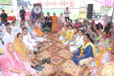 • श्रीगंगानगर.गंगनहर में 2500 क्यूसेक सिंचाई पानी की मांग को लेकर पिछले आठ दिन से किसान आंदोलन महाराजा सिंह चौक पर चल रहा है। इस बीच खेत-खलिहान और चूल्हा चौका का काम छोडक़र महिलाएं रविवार को किसानों के समर्थन में मोर्चा पर उतर आई हैं। गंगासिंह चौक पर महिला किसानों ने क्रमिक अनशन शुरू कर आंदोलन का नेतृत्व भी किया। इन महिलाओं में दुर्गा स्वामी,कमला बिश्नोई, सोना देवी बावरी,कांग्रेस की प्रदेश सचिव रामदेवी बाबरी, नमिता सेठी, वीना चौहान, मनिंद्र कौर नंदा, भूपेंद्र कौर टूरना, संतोष गहलोत, विद्या थोरी, सुमन ठोलिया, संदीप कौर तरखान और गोगा देवी जैसी नामी महिलाओं ने क्रमिक अनशन रखा। इस मौके पर बड़ी संख्या में ग्रामीण क्षेत्र से भी महिलाएं शामिल हुई।