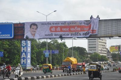 सीआर पाटिल के स्वागत में शहर में जगह-जगह लगे होर्डिंग्स, रैली में सैकड़ों वाहन होंगे शामिल