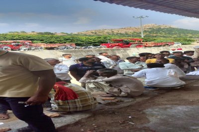 खाद के लिए सरकारी गोदाम में लगी किसानों की लाइनें