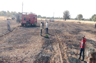 पांच एकड में खड़ी फसल आग से हुई खाक