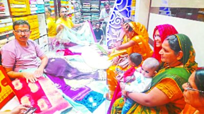 टीकमगढ़. करवा चौथ को लेकर बाजार में खरीदारी शुरू कर दी गई है। पर्व के पहले अपने लिए खास साड़ी और पोषाक को तैयार कराने के लिए महिलाओं का बाजार पहुंचना शुरू हो गया है।