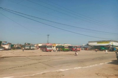 नए बस स्टैंड पर पहुंचाई गई यात्री बसें।