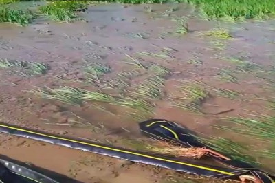 किसानों के अनुसार सिंचाई के लिए बिछाई गई अंडर ग्राउंड पाइप लाइन खेत में टूटने से तेज दबाव के साथ पानी बहने लगा। पानी की रफ्तार इतनी अधिक थी कि सुबह के समय घना कोहरा और चारों ओर फैला पानी एक सा नजर आ रहा था। देखते ही देखते खेतों में नदी.नाले जैसे हालात बन गए और फ सल पानी में डूबकर बह गई।