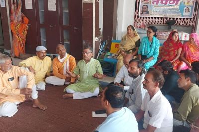 टोंक. फोटो. टोंक में सामूहिक तर्पण की तैयारी को लेकर गुरूवार को सर्व हिंदू समाज की बैठक में चर्चा करते हुए।