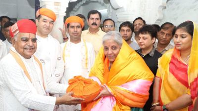 वित्त मंत्री निर्मला सीतारमण कृष्ण जन्माष्टमी से पहले नाथद्वारा स्थित श्रीनाथजी मंदिर पहुंची। इस दौरान मंदिर मंडल के अधिकारियों ने उनका अभिनंदन किया। यहां पहुंचकर उन्होंने ग्वाल झांकी के दर्शन किए, जिसके बाद मंदिर की परंपरा मुताबिक उनका रजाई उपरना ओढ़ाकर स्वागत किया गया। मौके पर राजसमंद विधायक दीप्ति माहेश्वरी सहित अन्य जनप्रतिनिधि उपस्थित रहे। साथ ही राजसमंद जिला कलक्टर डॉ. भंवरलाल, पुलिस अधीक्षक मनीष त्रिपाठी सहित अन्य वरिष्ठ अधिकारी भी मौजूद रहे।