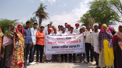राजस्थान पत्रिका के अमृतं जलम् अभियान के तहत रानिया तालाब अमृत सरोवर पर किया श्रमदान