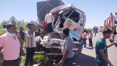 भटेवर(उदयपुर). कस्बे से होकर गुजर रहे राष्ट्रीय राजमार्ग 48 पर शुक्रवार को डिवाइडर के पास खड़े टैंकर से एक ट्रेलर भिड़ गया। हादसे में ट्रेलर चालक की उपचार के दौरान मौत हो गई। वहीं, टैंकर चालक भी गंभीर रूप से घायल हो गया। प्रत्यक्षदर्शियों ने बताया कि डिवाइडर पर पौधों को पानी पिलाते समय टैंकर के पीछे सुरक्षा को लेकर कोई बैरिकेड्स नहीं लगाए गए। जिससे ट्रेलर और टैंकर में जबरदस्त भिड़ंत हो गई।