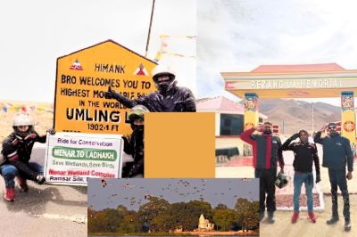 मेनार (उदयपुर): हाल ही में रामसर साइट घोषित हुए मेनार वेटलैंड कॉम्प्लेक्स एवं खेरोदा तालाब को बचाने का संदेश अब हिमालय की चोटियों पर गूंज रहा है। मेनार और खेरोदा गांव के तीन युवा प्रहलाद मेनारिया, जीवन मेनारिया और भैरूलाल मेनारिया ने ‘राइड फॉर कंजर्वेशन’ अभियान के तहत बाइक यात्रा कर लद्दाख के विश्व के सबसे ऊंचे मोटरेबल पास उमलिंग ला (19024 फीट) तक पहुंचकर तिरंगे के साथ ‘सेव वेटलैंड, सेव बर्ड्स’ का बैनर लहराया।