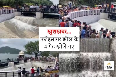 Fateh Sagar Lake Over Flows : राजस्थान में झीलों की नगरी उदयपुर शहर की शान विश्व प्रसिद्ध फतेहसागर झील लबालब होकर शनिवार को ओवरफ्लो हो गई। हजारों शहरवासियों की उपस्थिति में पूजा-अर्चना कर फतेहसागर के 4 गेट खोले गए। समूचा उदयपुर खुशी से झूम उठा।