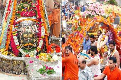 12 August Mahakal Ki sawari: 12 ज्योतिर्लिंगों में से एक उज्जैन के महाकालेश्वर मंदिर(Mahakaleshwar Temple Ujjain) में सावन के चौथे सोमवार (4th Monday of Sawan month) पर तड़के 2.30 बजे पट खोल दिए गए। यहां दर्शन के लिए रात से ही श्रद्धालु लाइन (mahakal devotees) में खड़े नजर आए। सबसे पहले बाब महाकाल (mahakal) का जलाभिषेक किया गया। इसके बाद दूध, दही, घी, शहद और फलों के रस से तैयार पंचामृत से बाबा का अभिषेक और पूजन किया गया।