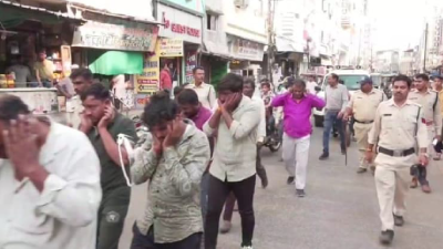 controversy on procession :मध्य प्रदेश के उज्जैन में पुलिस द्वारा चाकूबाजी की घटनाओं में शामिल दो दर्जन अपराधियों का जुलूस निकालने पर बवाल छिड़ गया है। ऐसा इसलिए क्योंकि इस जुलूस में पुलिस ने भाजपा बूथ अध्यक्ष को भी शामिल कर उसे रिकॉर्डधारी अपराधी बता दिया था। एसपी ने मामले में एक्शन लेते हुए कोतवाली थाने के 3 पुलिसकर्मियों को लाइन अटैच कर दिया है।