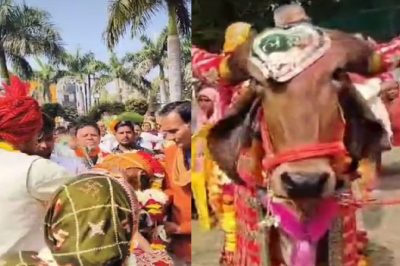 Makar Sankranti : मकर संक्रांति पर शहर अनूठी शादी का गवाह बना। गाय लक्ष्मी और नंदी नारायण का विवाह(Unique Wedding) रीति-रिवाजों से किया गया। शादी में हर वह रस्म निभाई गईं, जो एक पारंपरिक भारतीय विवाह में होती हैं। यह विवाह देवास रोड स्थित पुलिस सामुदायिक केंद्र में संपन्न हुआ। विवाह समारोह 12 जनवरी से शुरू हुआ, जिसमें हवन, हल्दी, मेहंदी, मंडप स्थापना, माता पूजन और गणेश पूजन जैसे अनुष्ठान किए गए। मकर संक्रांति के दिन बारात ढोल-धमाकों और फूल मालाओं के साथ पहुंची।
