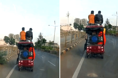 E-Rickshaw driver Stunt Video : मध्य प्रदेश के उज्जैन शहर से एक वीडियो सोशल मीडिया पर तेजी से वायरल हो रहा है। वीडियो को देख ऐसा लग रहा है जैसे ई-रिक्शा चालक को अब खतरों के खिलाड़ी बनने का शौक चढ़ गया है। वीडियो में ई-रिक्शा चालक श्रद्धालुओं की जान जोखिम में डाल कर रिक्शा की छत पर बैठाकर ले जा रहा है। जो सोशल मीडिया पर खूब वायरल हो रहा है।