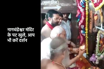 साल में एक बार खुलने वाले नागचंद्रेश्वर मंदिर के दर्शन करने के लिए भक्तों का उत्साह देखने को मिला। गुरुवार रात 12 बजे इसके पट खुले, जो शुक्रवार रात 12 बजे तक खुले रहेंगे। हालांकि रात 10 बजे ही भक्तों का प्रवेश बंद कर दिया जाएगा, जिससे समय पर गेट बंद करने में समस्या न हो। मुख्यमंत्री मोहन यादव ने भी शुक्रवार को सुबह नागचंद्रेश्वर मंदिर का वीडियो और फोटो जारी किया है। आप भी इस वीडियो को देख भगवान नागचंद्रेश्वर के दर्शन कर सकते हैं।