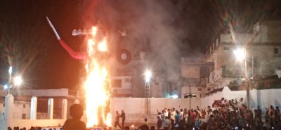 अस्थाई कुंड में किया गया दुर्गा प्रतिमाओं का विसर्जन, रावण के पुतले का किया गया दहन