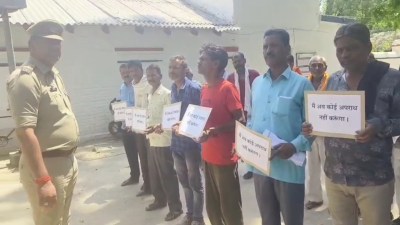 Criminals held placard in their hand and said- now I will not commit any crime उन्नाव में शातिर लुटेरे, हिस्ट्रीशीटर, चोरों जैसे अपराधियों को थाने में बुलाया गया। जिनका भौतिक सत्यापन कराया जा रहा है। पुलिस अधीक्षक के निर्देश पर जिले में ऑपरेशन दस्तक चलाया जा रहा है। इसी के अंतर्गत अपराधियों को थाने में बुलाकर उनको तख्ती पकड़ाई गई। अपराधी भी हाथ में तख्ती लेकर थाने में बोल रहे हैं कि भविष्य में अब अपराध नहीं करेंगे। जिसकी उन्होंने शपथ भी ली है। मामला सफीपुर थाना परिसर का है।