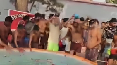 District jail Maha Kumbh bath for prisoners उन्नाव जिला कारागार में उसे समय हर हर गंगे का शोर गूंजने लगा। जब बंदी कैदियों ने संगम से ले गए पानी में स्नान किया। जिसकी व्यवस्था जिला कारागार प्रशासन की तरफ से किया गया था। इसके लिए एक अस्थाई काफी बड़ा टब बनाया गया था। गुलाब की पंखुड़ियां डाली गई थी। पूजा अर्चना के बाद कैदी दौड़ते भागते आए और उन्होंने टब से पानी निकाल कर स्नान किया। इस दौरान हर हर गंगे के नारे भी लगे।