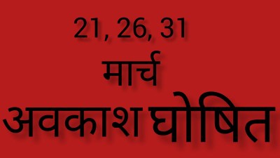 public holidays: मार्च महीने में छुट्टियों की भरमार है। बेसिक शिक्षा परिषद कार्यालय से जारी अवकाश तालिका के अनुसार आगामी 21, 26 और 31 मार्च को भी सार्वजनिक अवकाश है। इन दिनों में सभी सरकारी कार्यालय, स्कूल, और कॉलेज बंद रहेंगे।