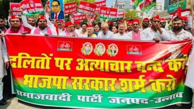 SP said BJP goons tortured Dalits समाजवादी पार्टी ने कहा है कि भाजपा के पहले हुए गुंडे दलितों पर अत्याचार कर रहे हैं। दलितों पर अत्याचार मामले में उत्तर प्रदेश पहले स्थान पर है।