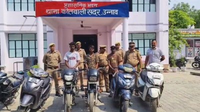Three vicious vehicle thieves arrested उन्नाव में पुलिस ने शातिर वाहन चोरों की गिरफ्तार किया है। जिनके पास से तीन स्कूटी और तीन मोटरसाइकिल बरामद की गई है। अभियुक्तों को बंद पड़े कोठरी से गिरफ्तारी किया गया है।