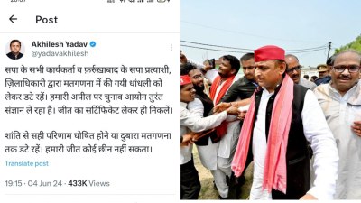मामला उस समय और गरमा गया। जब समाजवादी पार्टी के राष्ट्रीय अध्यक्ष अखिलेश यादव ने सभी कार्यकर्ता व पदाधिकारी के साथ प्रत्याशी से भी मौके पर डटे रहने को कहा। 'एक्स' पर उन्होंने लिखा कि सपा के सभी कार्यकर्ता, प्रत्याशी मतगणना में की गई धांधलियों को लेकर डटे रहे।