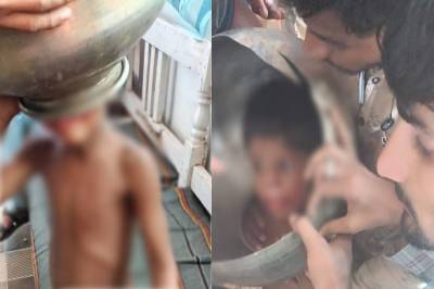 गागर में बच्चे की गर्दन फंसने की ये घटना विदिशा जिले के लटेरे के मुरावस गांव की है। जहां रहने वाले हबीब खान के 5 साल के बेटे ने पानी पीने के चक्कर में गागर में अपनी गर्दन फंसा ली। गागर में सिर जाने के कारण कुछ ही देर में बच्चे को सांस लेने में तकलीफ होने लगी। बच्चे की गर्दन गागर में देख परिवार वाले हैरान हो गए। आसपड़ोस के लोग भी जमा हो गए और पहले तो लोगों ने खुद ही गागर से गर्दन निकालने की कोशिश की लेकिन जब गर्दन नहीं निकली तो बच्चे को डॉक्टर के पास लेकर पहुंचे। लेकिन डॉक्टर ने भी गर्दन निकालने से मना कर दिया।