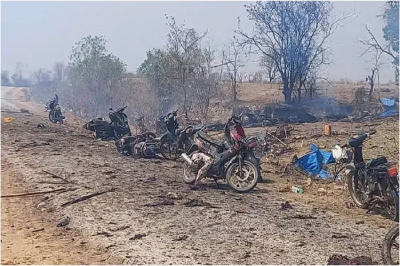 म्यांमार के चाउंग यू टाउनशिप से एक दिल देहला देने वाली घटना सामने आई है, यहां बौद्ध फेस्टिवल के दौरान एक मोटर-पावर्ड पैराग्लाइडर ने भीड़ पर दो बम गिराए हैं। जिसके चलते कम से कम 24 लोग मारे गए और 47 घायल हुए हैं। बीबीसी के निर्वासित नेशनल यूनिटी गवर्नमेंट (NUG) के एक प्रवक्ता ने इस घटना की जानकारी दी है।