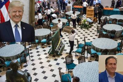 उन्होंने बताया कि राष्ट्रपति बराक ओबामा के 2013 के लंच मेनू में उबले हुए लॉब्स्टर, ग्रिल्ड बाइसन और एप्पल पाई शामिल थे। ट्रंप का लंच, जो स्टैचुएरी हॉल में तीन कोर्सेज में था। पहला, मेन लॉब्स्टर और गल्फ श्रिम्प सैफ्रन सॉस और पीनट क्रम्बल के साथ, जो ज. लोहर 2013 एरोयो विस्ता शारदोने के साथ परोसा गया था। ग्रिल्ड सेवन हिल्स एंगस बीफ डार्क चॉकलेट और जुनिपर जूस के साथ, आलू ग्रैटिन के साथ परोसा गया और इसे डेलिकटो ब्लैक स्टैलियन 2012 लिमिटेड रिलीज़ नापा वैली कैबेरनेट सॉविनयोन के साथ पेश किया गया था। डेजर्ट के तौर पर, मेहमानों ने चॉकलेट सुफले और चेरी वनीला आइसक्रीम का स्वाद लिया था, जो कोर्बेल नेचुरल "स्पेशल इनॉगरल क्यूवी" कैलिफोर्निया शैम्पेन के साथ परोसे गए थे।