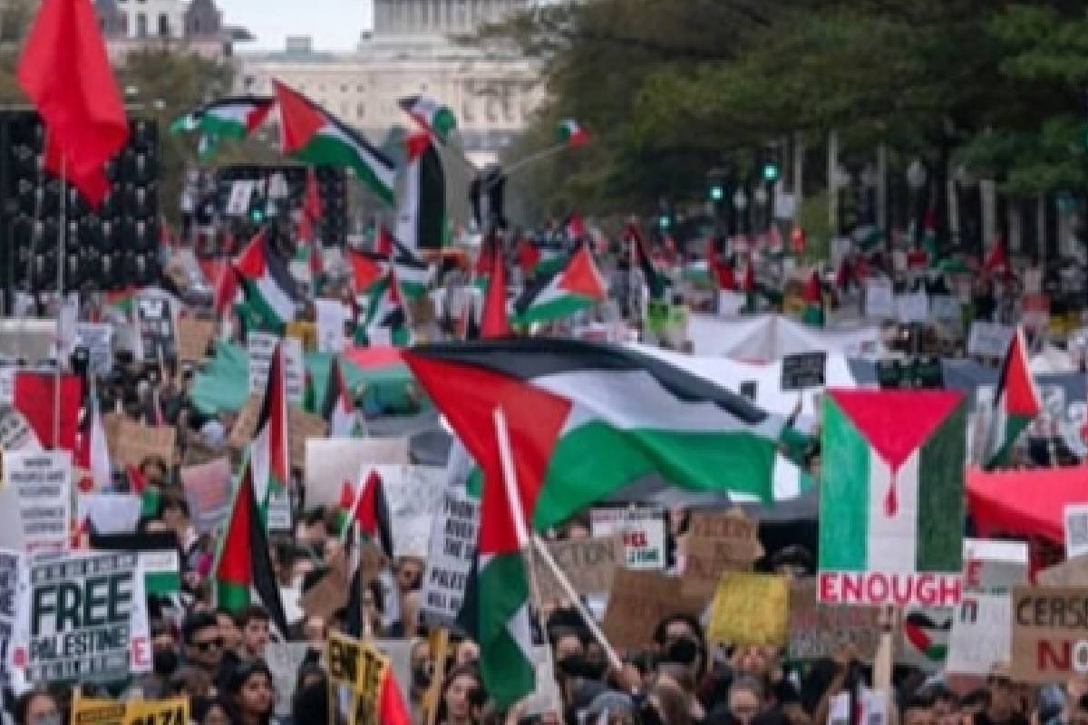 Student protest in London, the camp has been renamed as 'Rafah Camp' : इज़राइल-हमास युद्ध ( Israel-Hamas War) के चलते अमरीका की हार्वर्ड यूनिवर्सिटी (Harvard University) की बिल्डिंग के हॉल का नाम शहीद पत्रकार (Martyred Journalist) शिरीन अबू अकिला (Shirin Abu Aqila) के नाम पर रखा गया है, जिन्हें इजराइली सेना ने गोली मार दी थी।