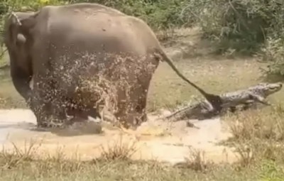 बच्चे की जान बचाने के लिए मगरमच्छ से भिड़ी हथिनी