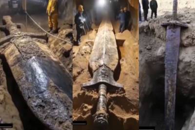 यह किसी टनल के अंदर का हिस्सा दिख रहा है। इसे शेयर करते हुए कई लोगों ने दावा किया है कि कुंभकर्ण की तलवार मिल गई है। वायरल वीडियो की सच्चाई जानने से पहले, चलिए देखते हैं कि इसमें क्या है। सोशल मीडिया पर शेयर किए जा रहे वीडियो में चार स्लाइड हैं, जिसमें एक विशाल तलवार जमीन पर रखी हुई है। यह किसी टनल के अंदर का हिस्सा दिख रहा है, जिसके पास दो लोग प्रोटेक्टिव गियर पहने खड़े हैं। एक अन्य तस्वीर में तीन व्यक्ति विशाल तलवार को देखते हुए दिखाई दे रहे हैं। उनके चेहरे स्पष्ट नहीं हैं, लेकिन वे तलवार के अनुपात में बहुत छोटे लग रहे हैं।