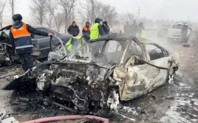 कजाकिस्तान में रोड एक्सीडेंट का मामला सामने आया है, जिसमें दो कारों की भीषण टक्कर हो गई। इस हादसे में 4 लोगों ने अपनी जान गंवा दी।
