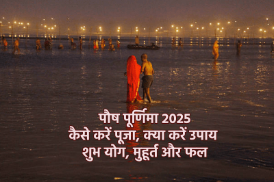 Paush Purnima 2025 Guide: हिंदू धर्म में पूर्णिमा पर भगवान विष्णु और मां लक्ष्मी की पूजा-अर्चना, व्रत का विधान है। मान्यता है कि ऐसा करने से साधक को सुख और समृद्धि की प्राप्ति होती है। लेकिन इस बार दो बेहद शुभ योग भी बन रहे हैं। आइये जानते हैं कि पौष पूर्णिमा पर कौन से योग बन रहे हैं, पूर्णिमा की पूजा विधि क्या है और इस दिन क्या करें (aaj ki puja vidhi)